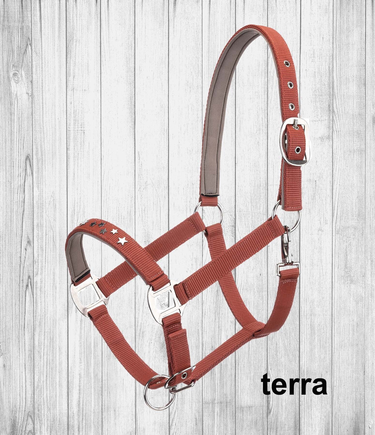Stabiles Nylon Halfter mit silbernen Sternen auf dem Nasenteil.