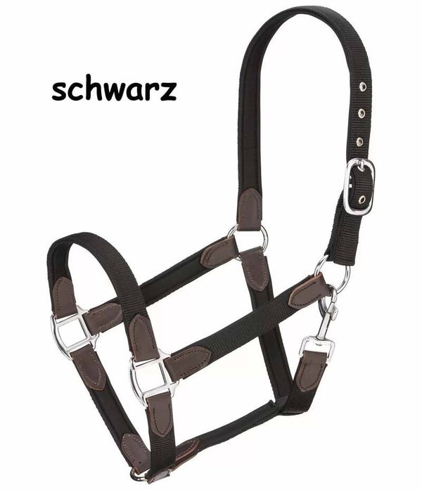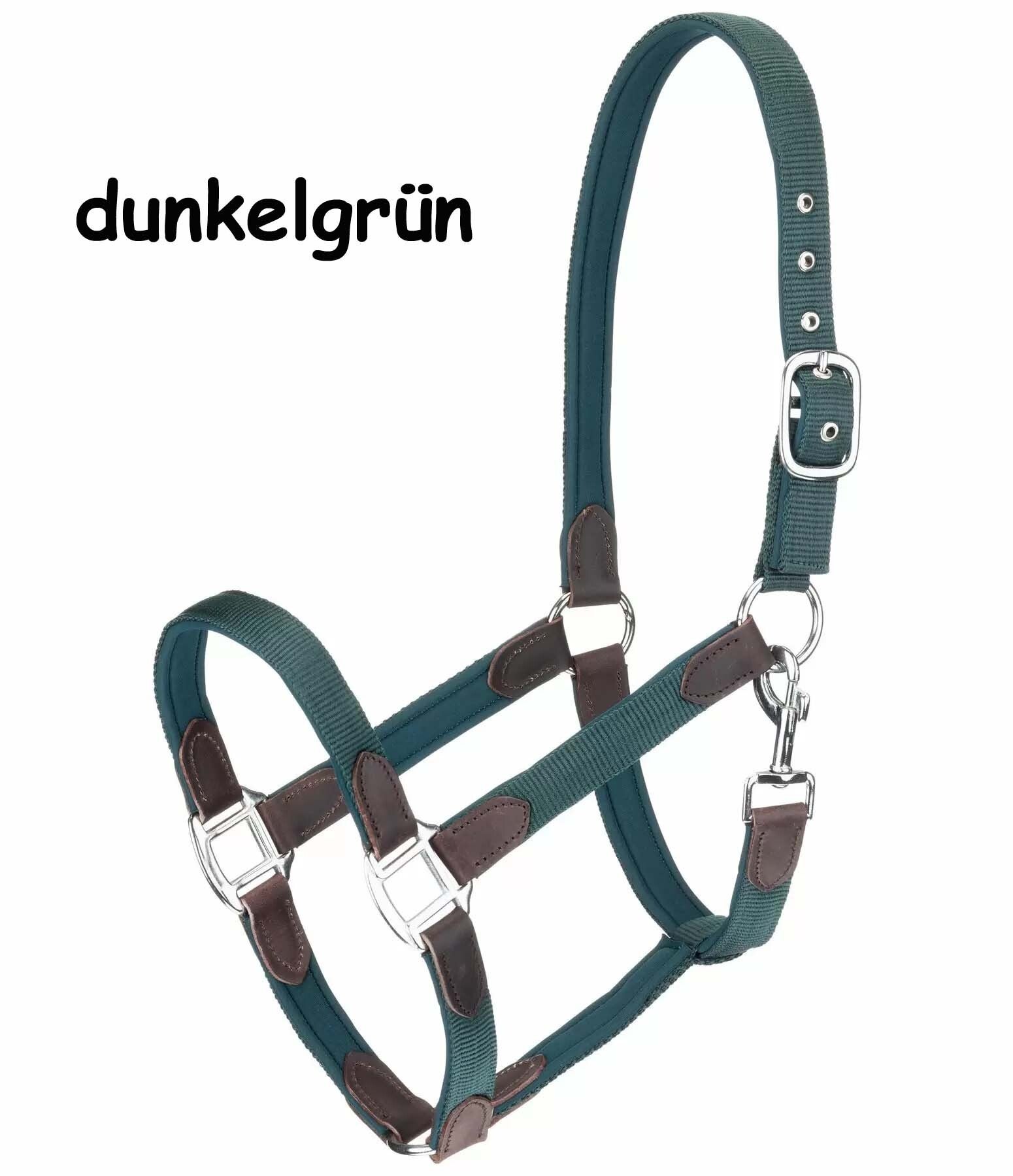 Das Halfter ist komplett mit Neopren unterlegt/gepolstert (Nasenteil, Genickstück, Kinn- und Ganaschenteil, Backenstücke).